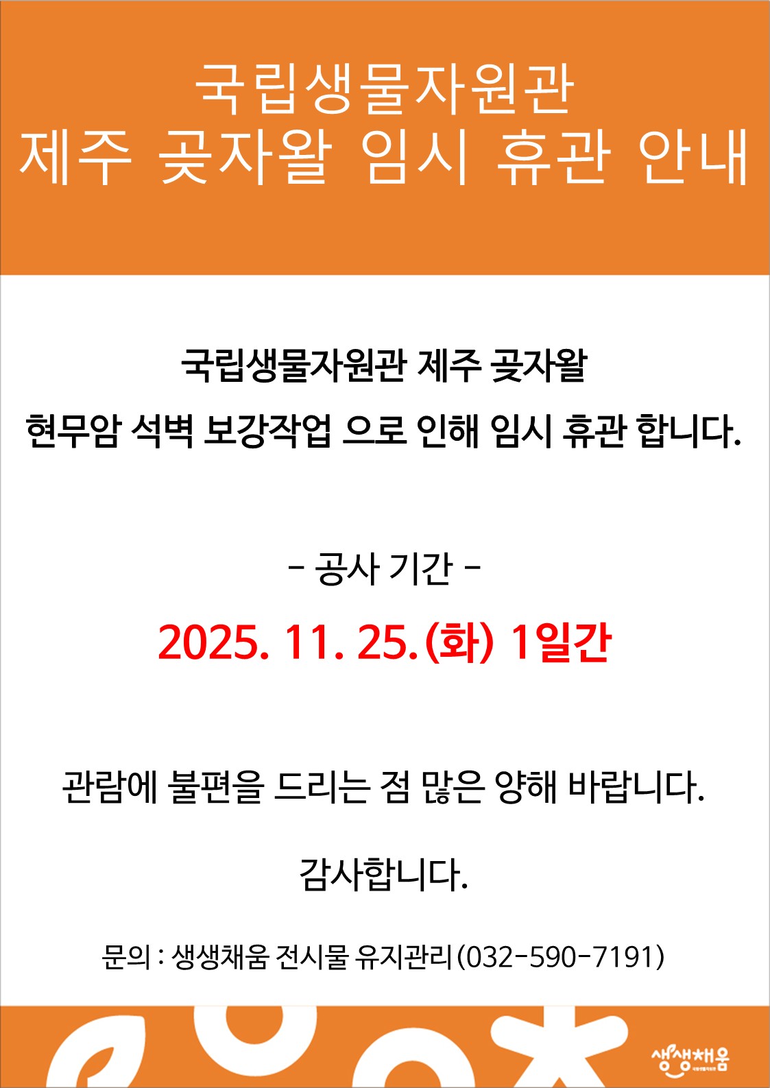 국립생물자원관에서 알려드리는 기관 관련 소식 및 알림글입니다.